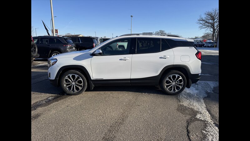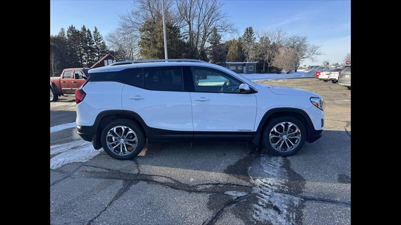 The SLT trim for the 2019 Terrain pairs the 2.0L turbocharged inline-4 (252 horsepower, 260 lb-ft of torque) with a GM 9-speed automatic transmission. Terrain SLT was offered from the factory with either front-wheel drive or an available all-wheel-drive system. The SLT configuration emphasizes a higher level of comfort, convenience and connectivity compared with lower trims while retaining Terrain’s compact-SUV footprint and utility.