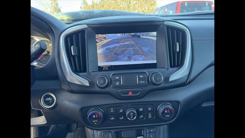 - Factory-installed GMC infotainment system with a centrally mounted touchscreen and physical controls.
