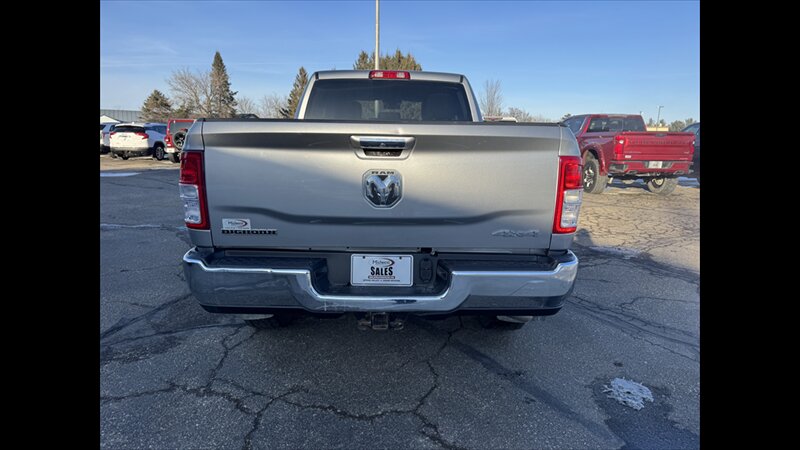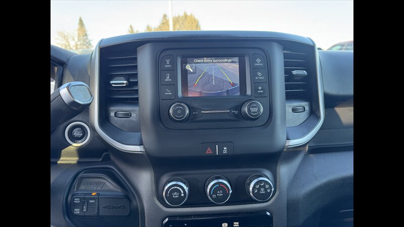- Factory Uconnect infotainment package with touchscreen interface (base screen size on Big Horn, with larger screens available as factory options), AM/FM radio, Bluetooth hands-free phone and audio streaming, and USB/Auxiliary inputs. Steering-wheel-mounted audio and phone controls are included.