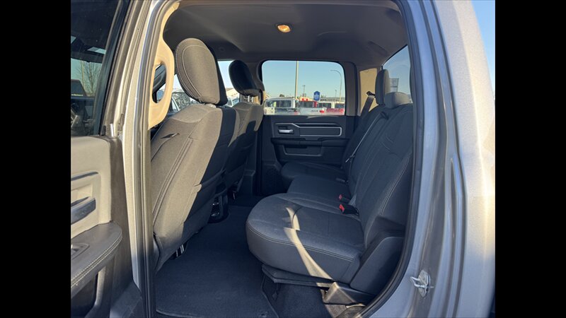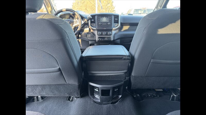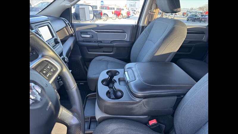 - Big Horn cabin content balances durability and convenience: cloth seating surfaces, supportive driver seat with manual (and on some configurations power) adjustments, and a center console that converts between storage and an available 40/20/40 split front seating layout on certain cab choices.