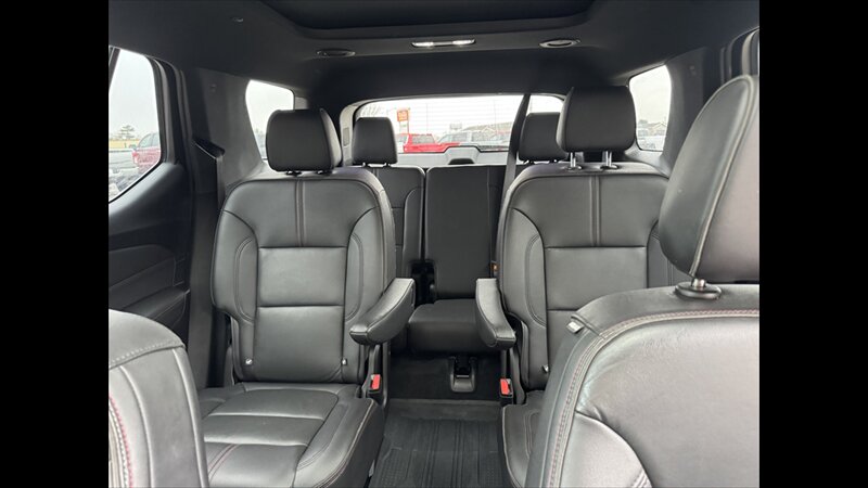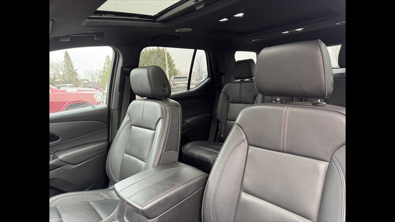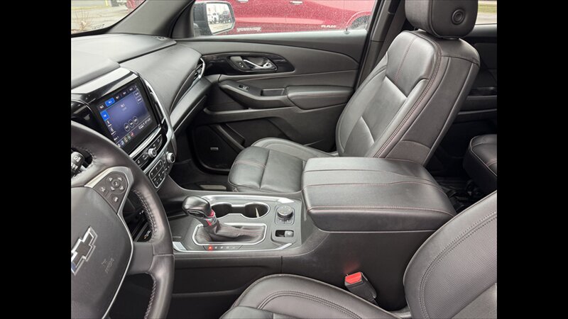 - The Traverse RS is factory-trimmed with premium seating surfaces (leather-appointed on RS), and RS-specific interior accents and stitching.