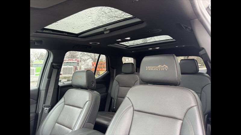 - Three rows of seating for seven or eight occupants depending on second-row configuration (captain’s chairs or bench). High Country trims commonly offer leather-appointed seating surfaces with premium stitching and trim.