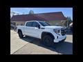 - All-terrain tires mounted on dark-finish wheels, plus reinforced recovery points and accent exterior trim that distinguish the AT4 from other Sierra 1500 trims.